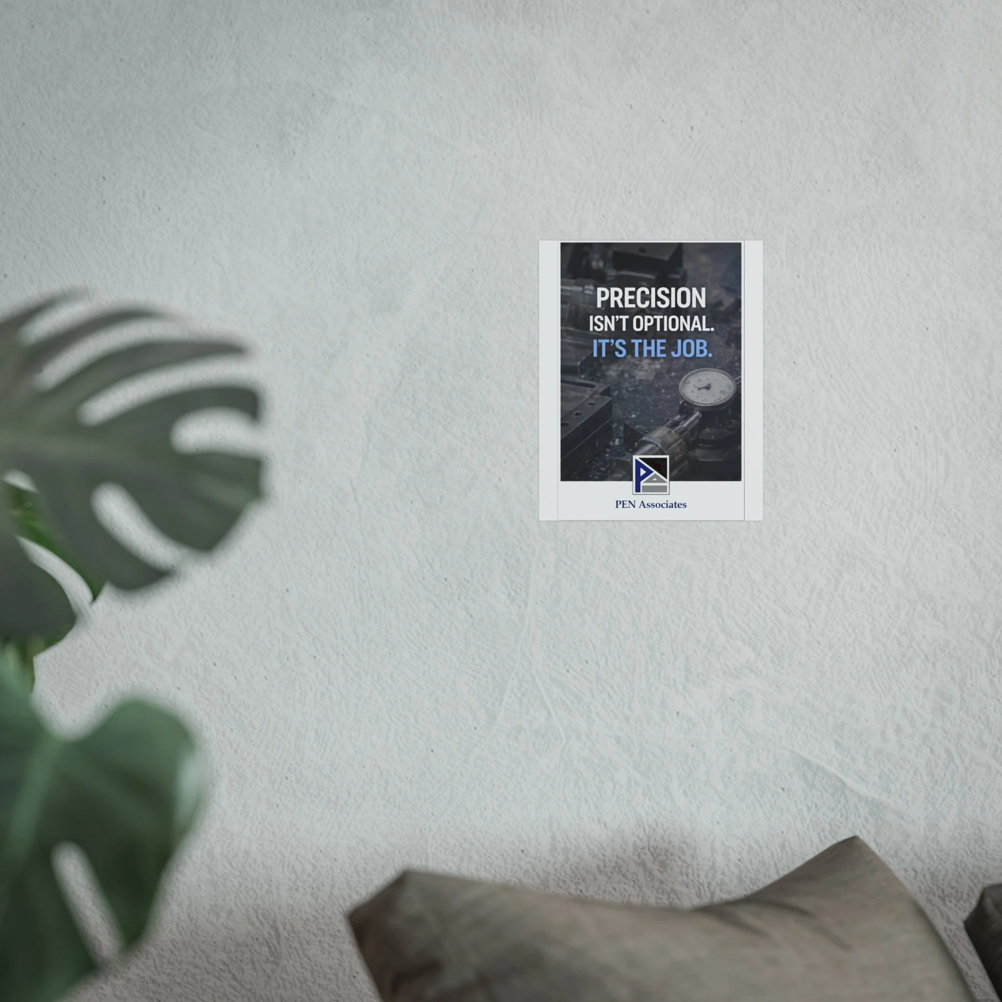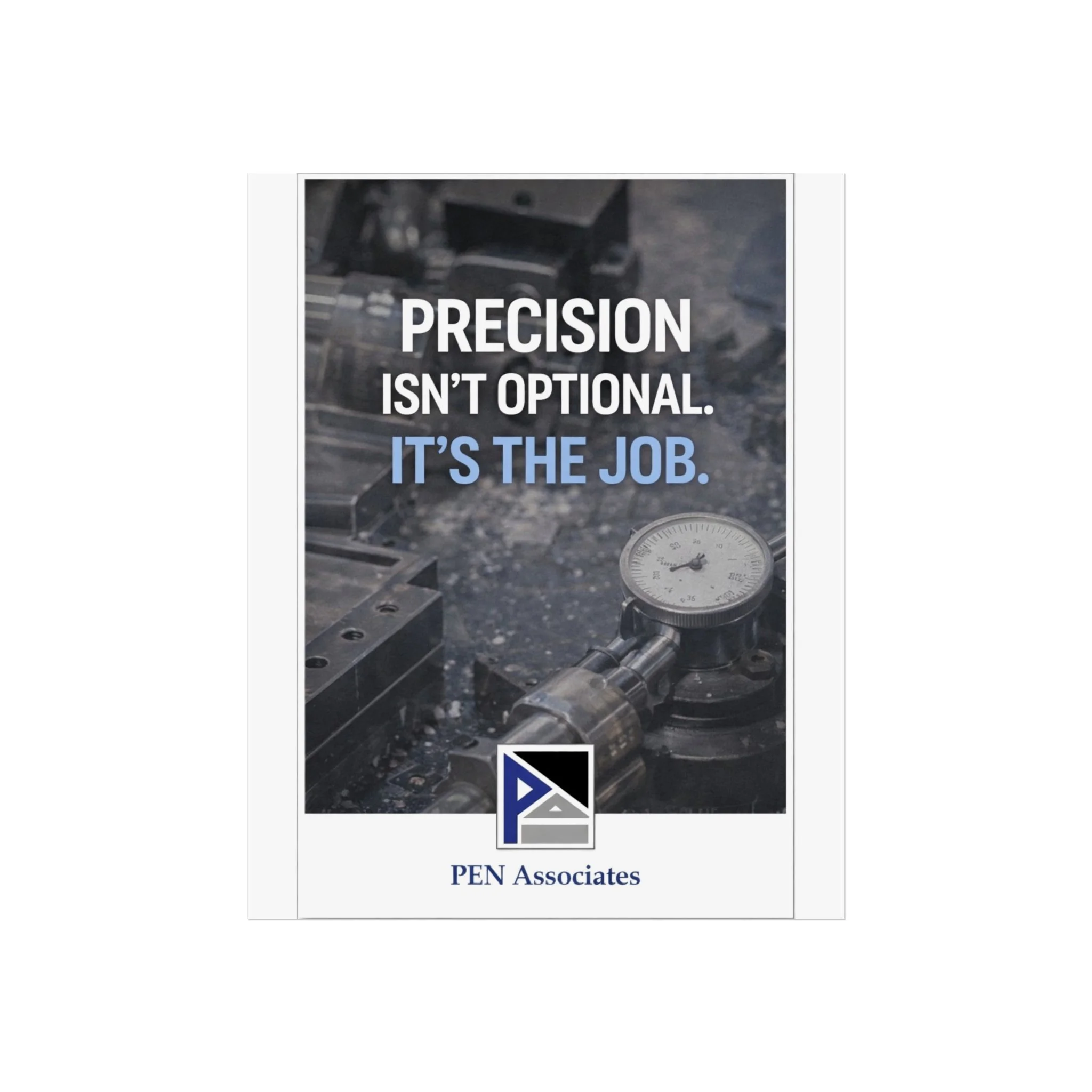 A gallery-quality fine art poster that brings a crisp, focused energy to workshops, offices, or maker spaces. The image shows a close, tactile view of industrial tools and gauges with the bold line: “PRECISION ISN’T OPTIONAL. IT’S THE JOB.” — a clear reminder of craft, care, and professional standards. Printed on smooth, acid-free 220gsm paper using REACH-certified inks and giclée print methods, the matte finish keeps glare low and detail sharp. Available in horizontal, vertical, and square formats and multiple sizes, this piece sits confidently on a studio wall or above a workbench, reinforcing a culture of exactness without shouting for attention.